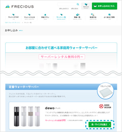 まずは希望するウォーターサーバーの機種を選択します。