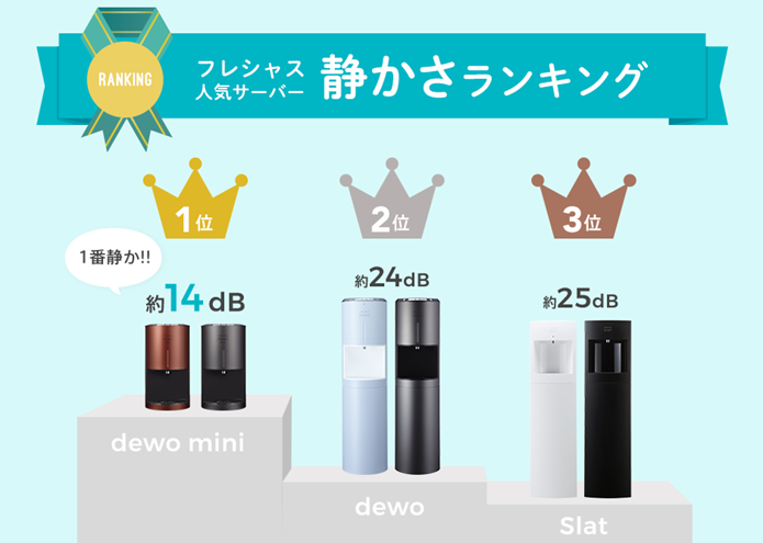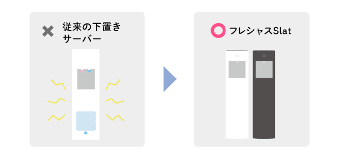 スラットは水を下に置くタイプですが、サーバー内部の構造を工夫して他社モデルより約3割も音が静かになっています。
